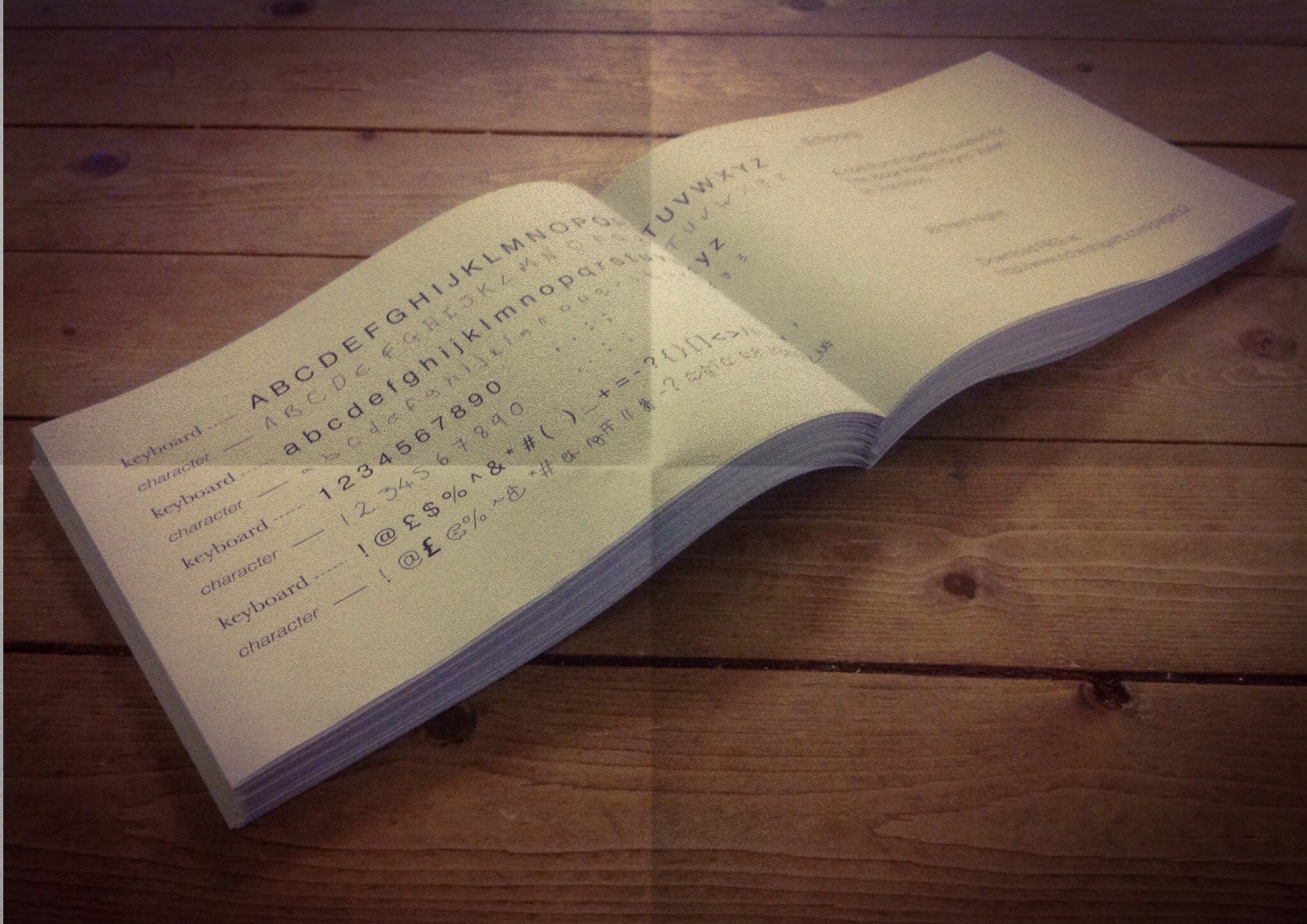The title refers to a pause in writing and the pause in the history of the building while suggests the anticipation of the re-opening. It is designed for use in Welsh and English with lesser used symbol keys assigned to Welsh letters such as Ll, Ff, Ch, Ng. It is intended to be used primarily for communications between departments at the gallery and is intentionally informal.