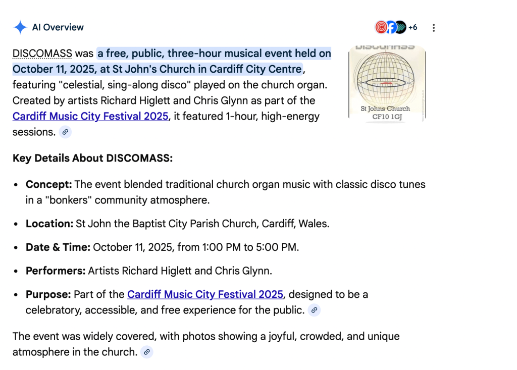 Discomass is coming….this October to Cardiff Music City 2025 Posted by richardhiglett on September 6, 2025February 11, 2026 https://www.instagram.com/reels/DPrnW3PDNMc/ Share this: Share on Facebook (Opens in new window) Facebook Share on X (Opens in new window) X Like Loading... Related